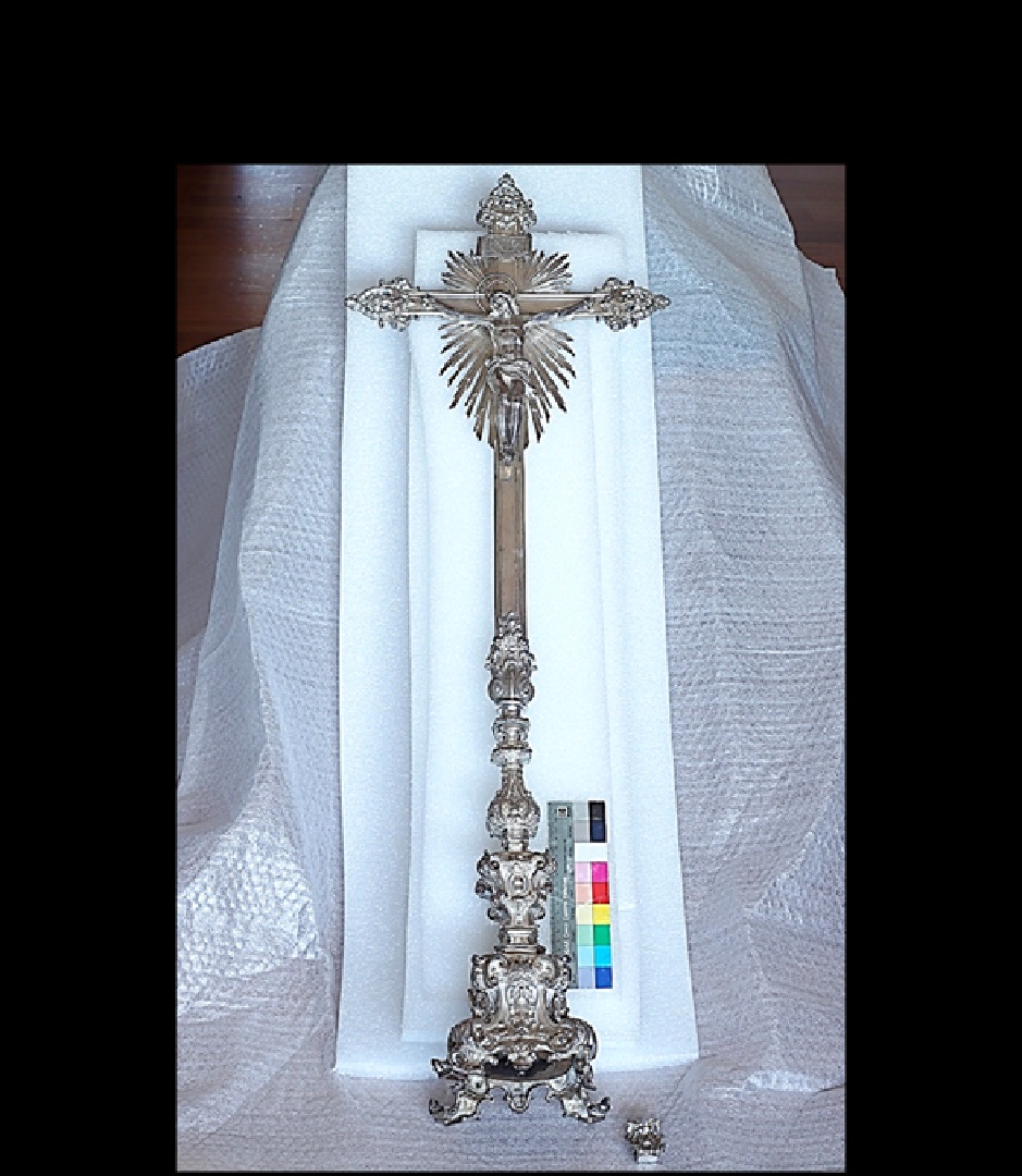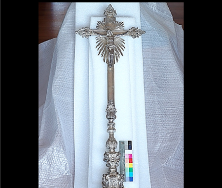 Conservation and restoration of one Altar Cross made of cast and chiselled silver alloy (18thc.) from the Collection of the National Palace of Queluz, Sintra.