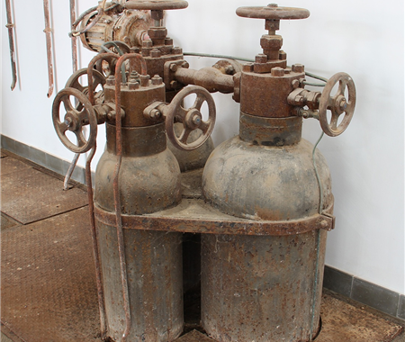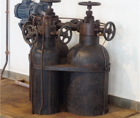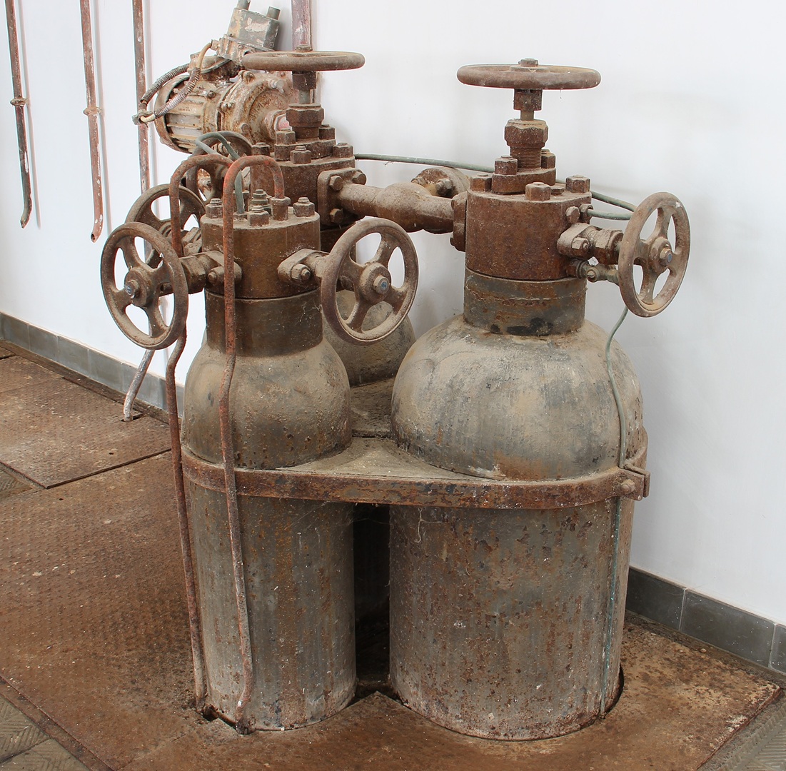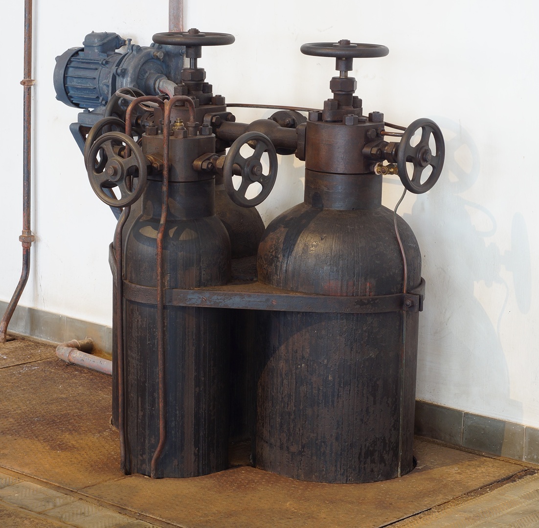 - Cylinders with valves in iron and copper alloys, wood and paints.