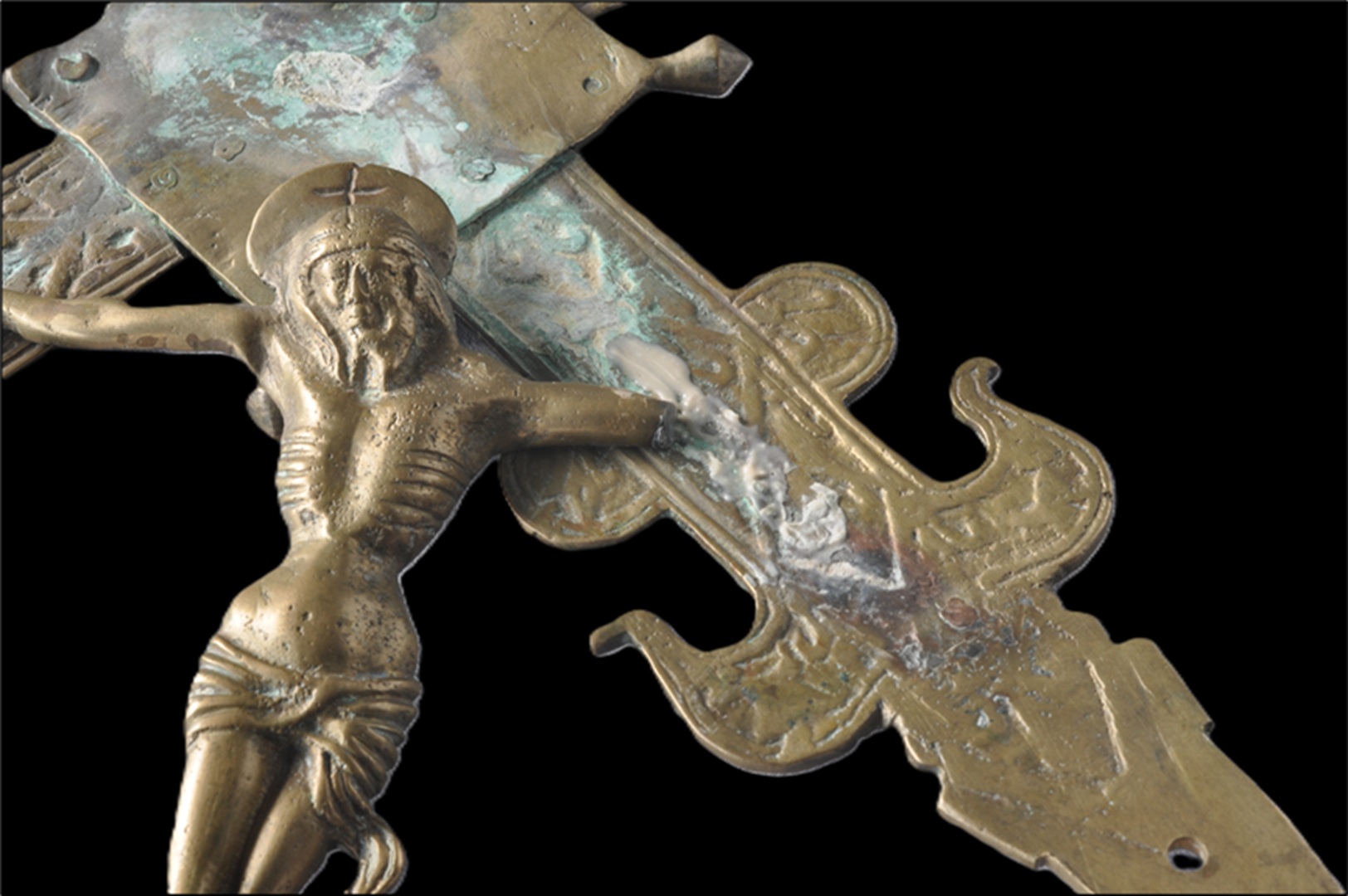 Christ on the Cross (detail), before the intervention.Christ on the Cross (detail), after the intervention.Christ on the Cross before the intervention.Christ on the Cross, after the intervention.