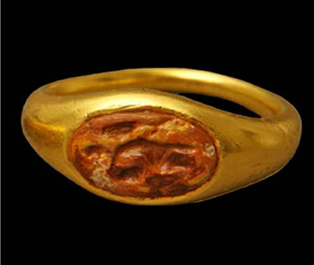 At the request of the Council Community Museum of Batalha a gilded silver replica of one gold signet ring (1st c. AD), with unknown provenance, from the Archaic Jewellery Collection of the National Archaeological Museum, (Au 130) was produced.