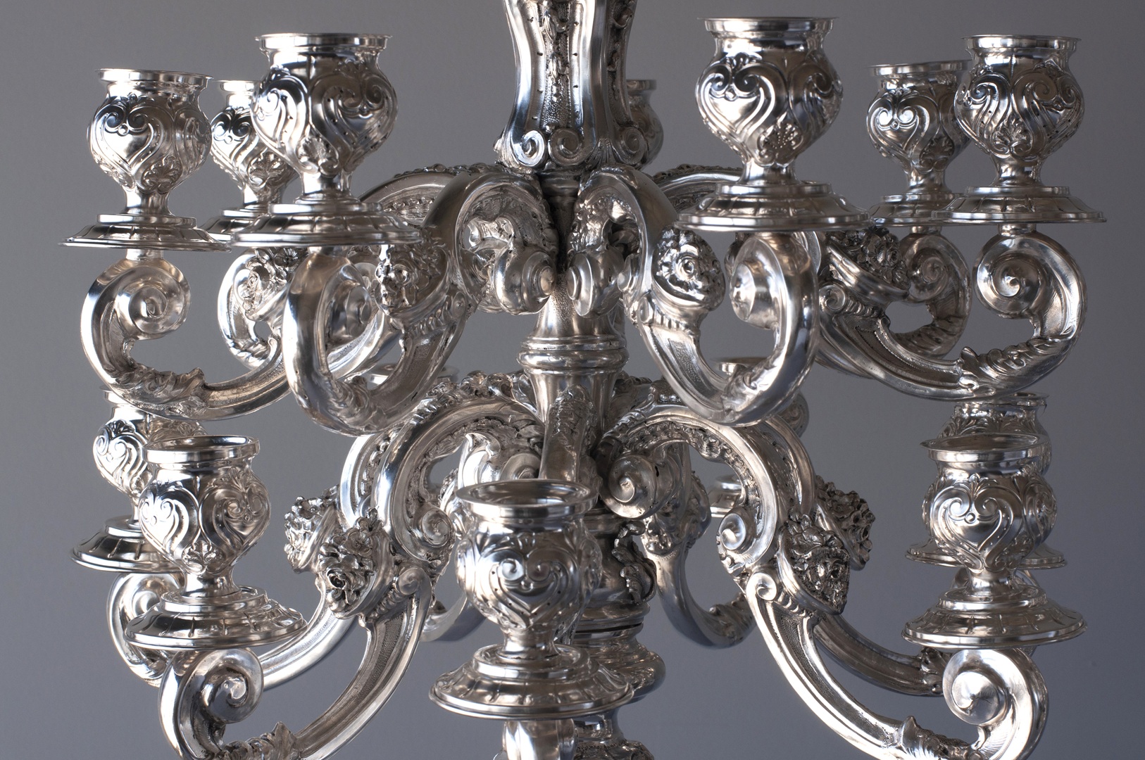 Conservation and restoration of two silver alloy chandlers, from a private collection.