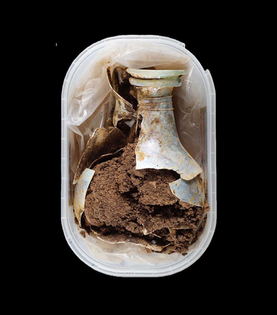 Fíbula, antes da intervenção. Fíbula, depois da intervenção.Lucerna, antes da intervenção.Lucerna, depois da intervenção.Copo de vidro, antes da intervenção. Copo de vidro, depois da intervenção. Argola, antes da intervenção. Argola, depois da intervenção. Garrafa de vidro, antes da intervenção. Garrafa de vidro, depois da intervenção.Cinzel e escopro, antes da intervenção. Cinzel e escopro, depois da intervenção. Alfinetes de osso, antes da intervenção.Alfinetes de osso, depois da intervenção. Tachas, antes da intervenção. Tachas, depois da intervenção.