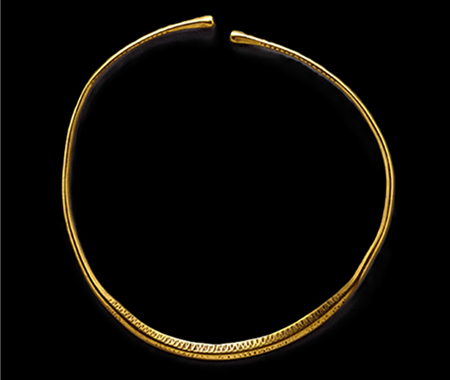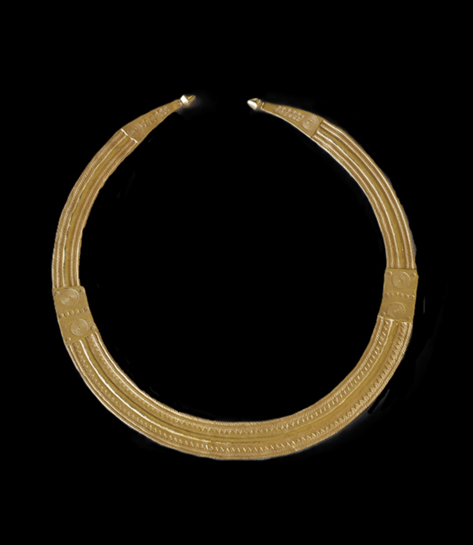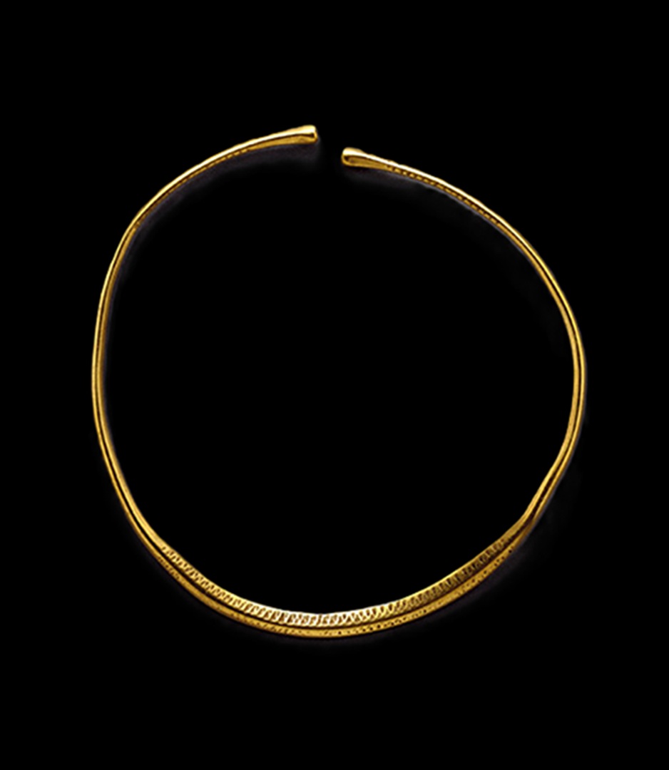 Execução de réplicas de prata dourada de um colar (Au295) e de uma lúnula (Au294) de ouro (Idade do Ferro), provenientes de escavações arqueológicas realizadas na Região de Viseu, do acervo da Colecção de Ourivesaria Arcaica do Museu Nacional de Arqueologia. As peças integram a exposição "Ícones de Viseu - o Despertar do Museu".