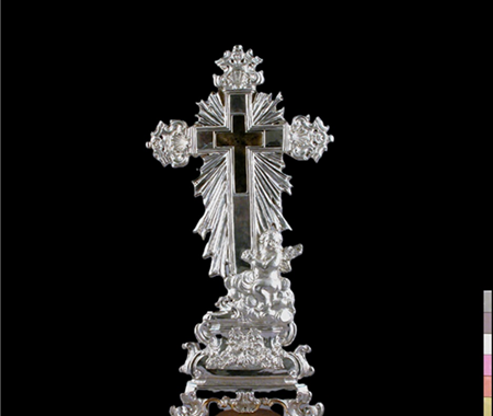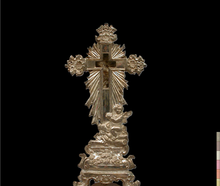 Intervenção numa cruz-relicário (c. 1751) de liga de prata e madeira, da autoria de Giuseppe Borgiani (ourives), do acervo da Colecção de Arte Sacra do Museu de São Roque.