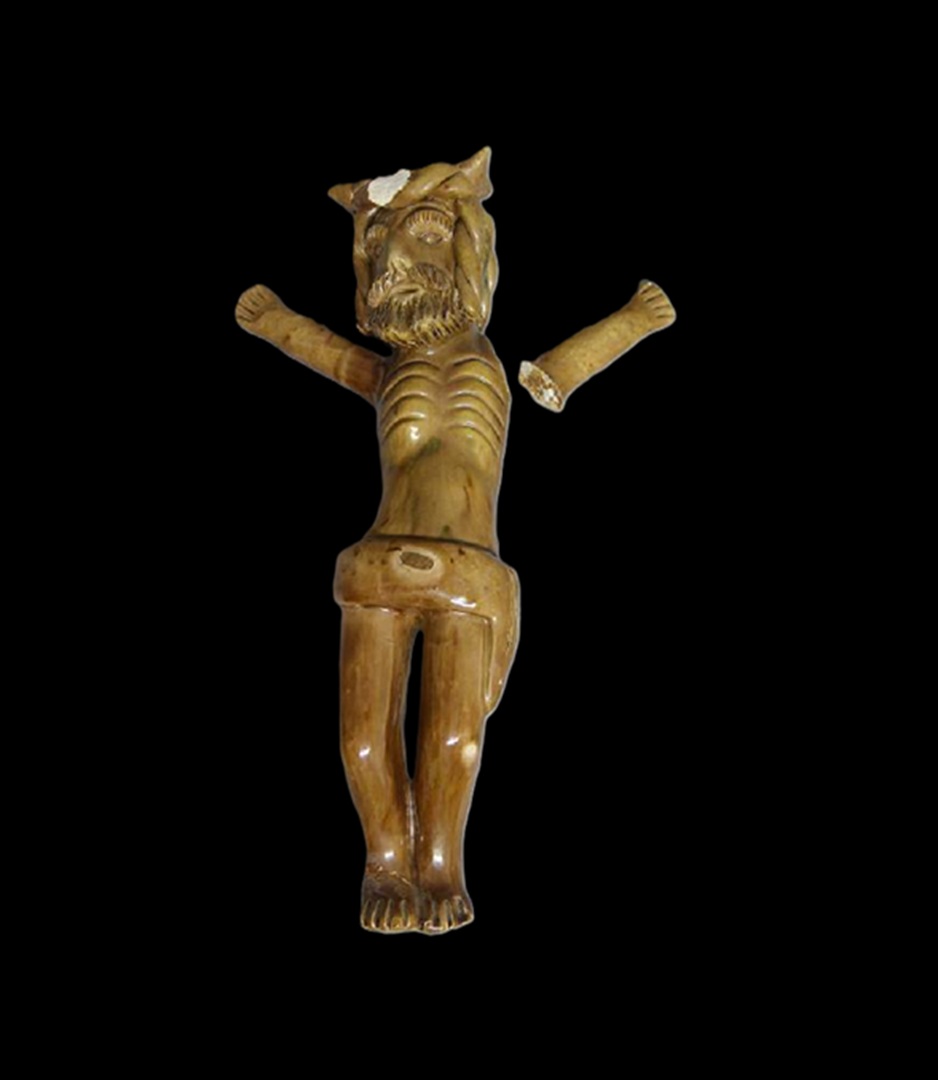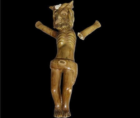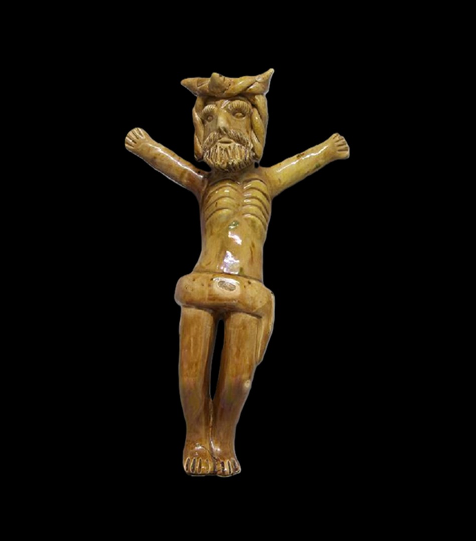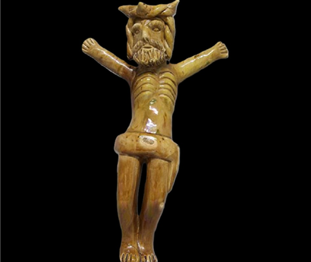 Conservação e restauro de uma escultura de faiança vidrada, com a representação de Jesus Cristo, da autoria de Rosa Ramalho, de uma colecção particular.
