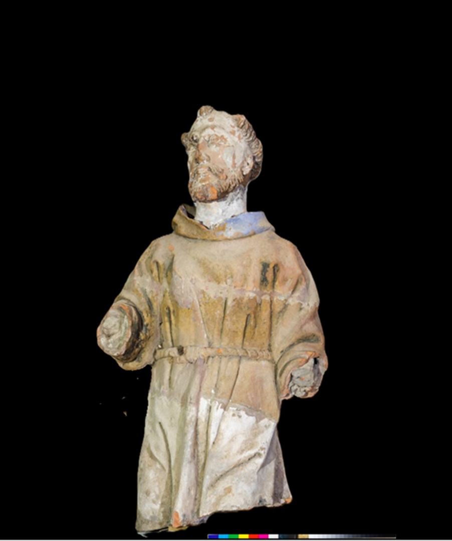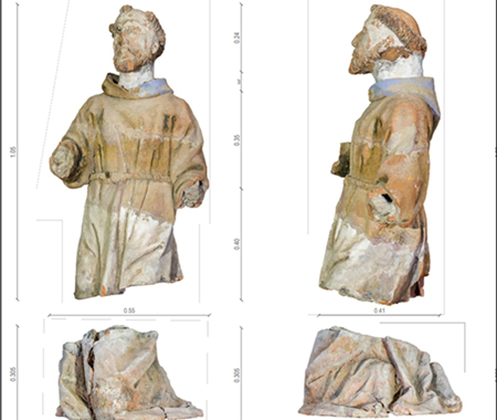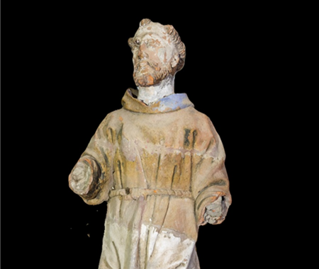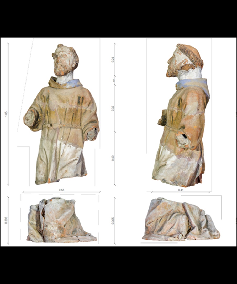 Conservação e restauro de esculturas policromadas feitas em terracota de dois frades capuchos, uma de menor dimensão (Frei Leone), um busto, e outra de vulto pleno (São Francisco de Assis), do acervo do Convento dos Capuchos, também conhecido por Convento de Santa Cruz da Serra de Sintra. Trabalho realizado sob coordenação de Sandra Alves, conservadora-restauradora.