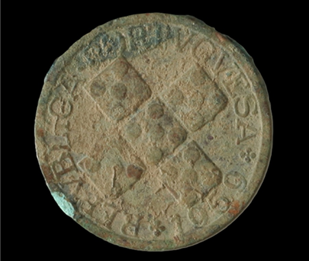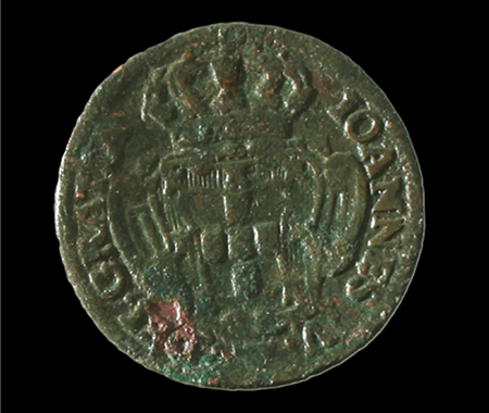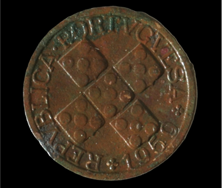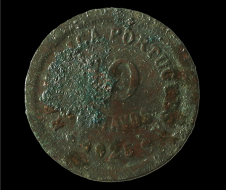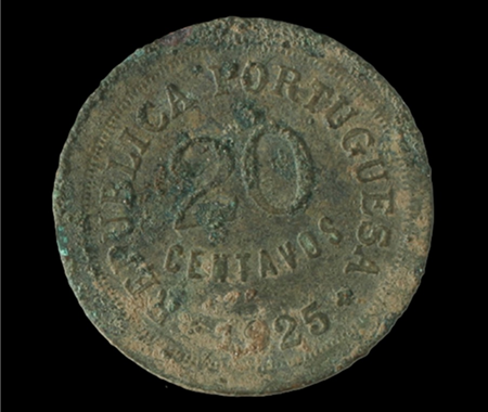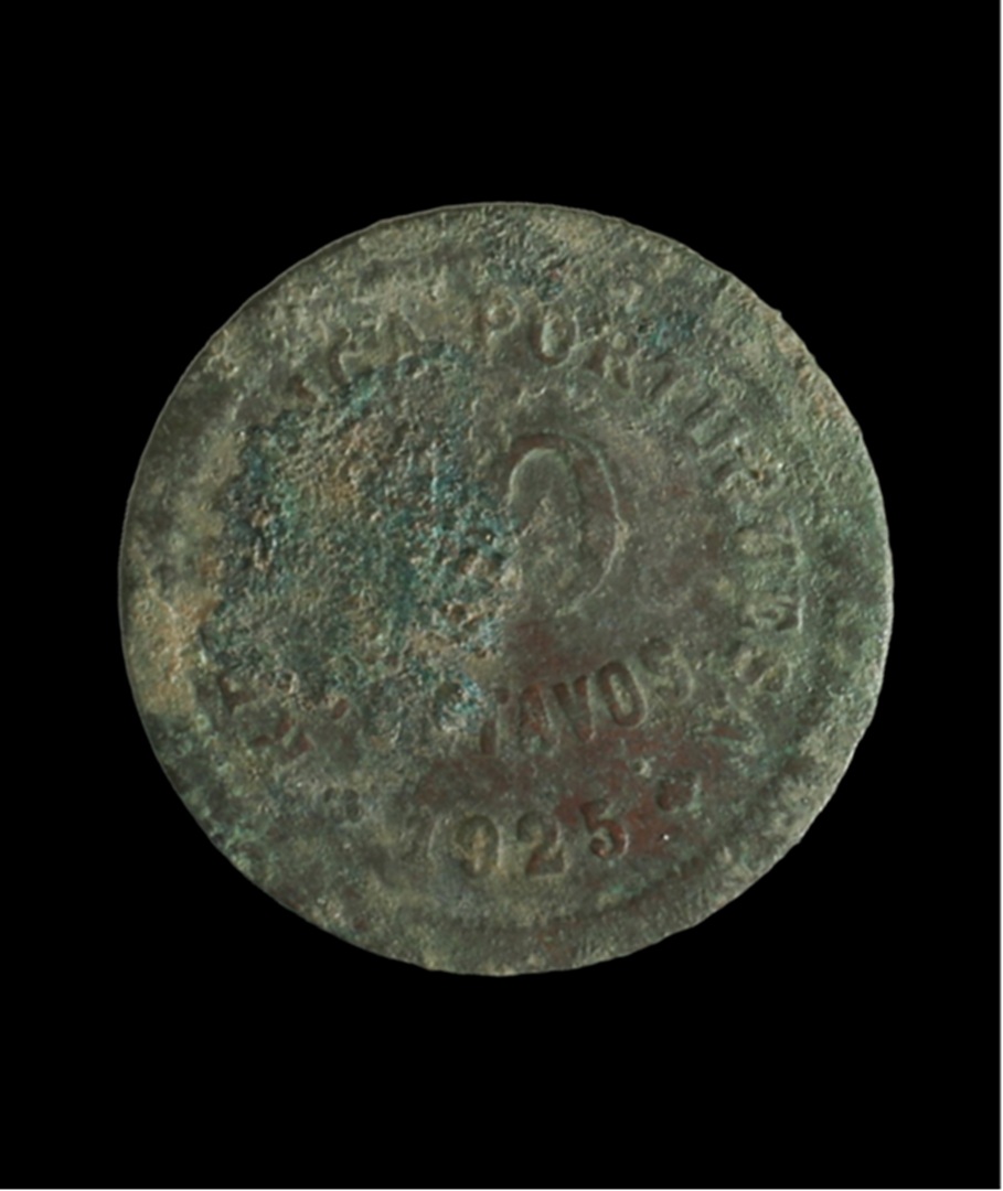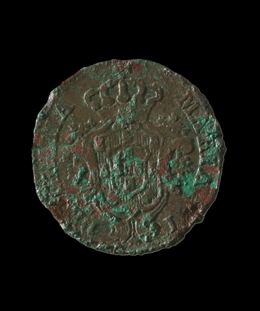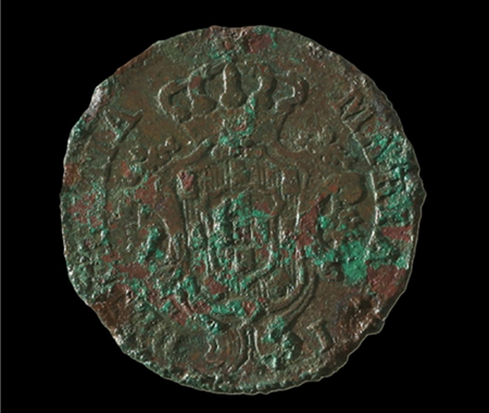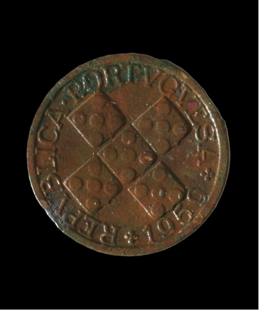 Conservação e restauro de 11 moedas (1385-1979) de liga de cobre provenientes da escavação arqueológica da Azenha* no centro da vila de Santa Cruz, na região de Torres Vedras. A Azenha de Santa Cruz, agora transformada em Centro Interpretativo, foi edificada nos finais do séc. XV e está classificada como Imóvel de Interesse Público de Arquitectura Civil [1997].