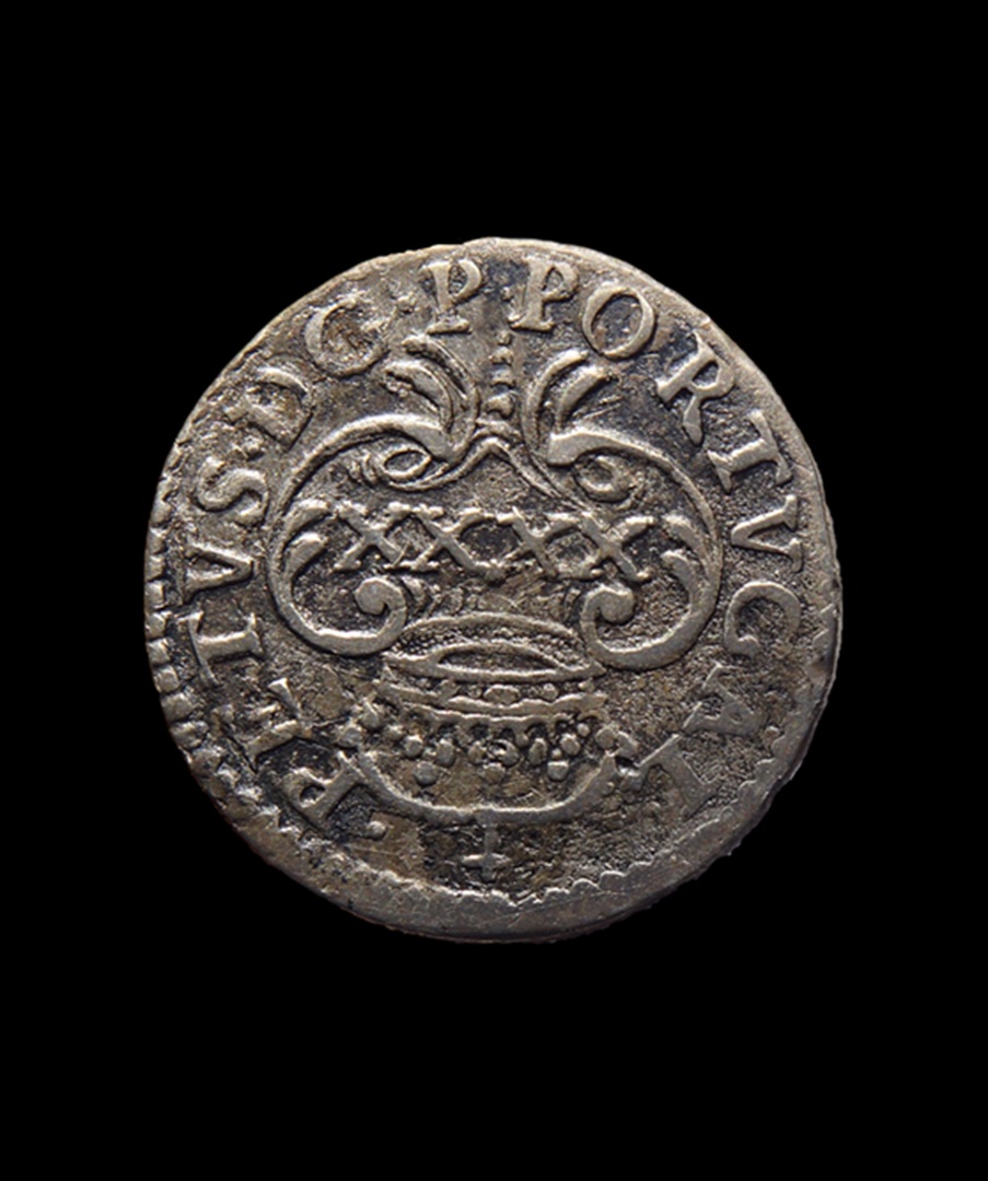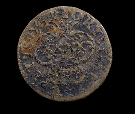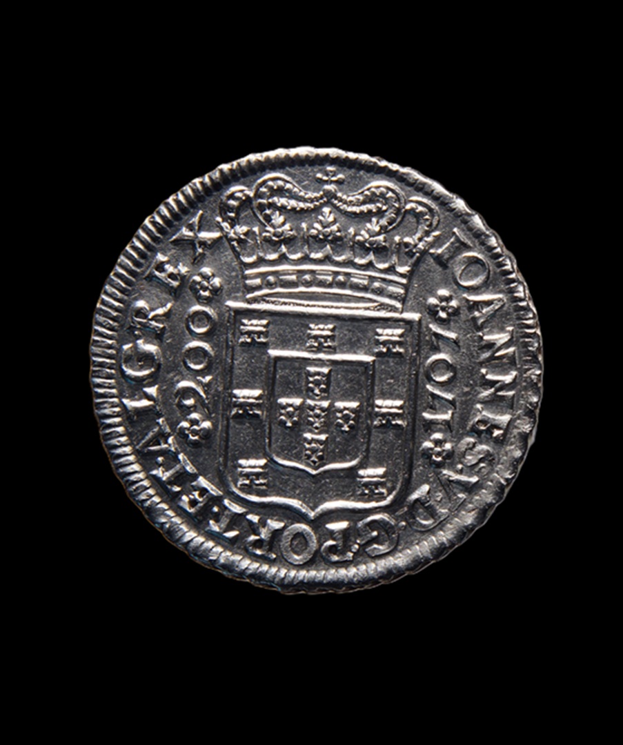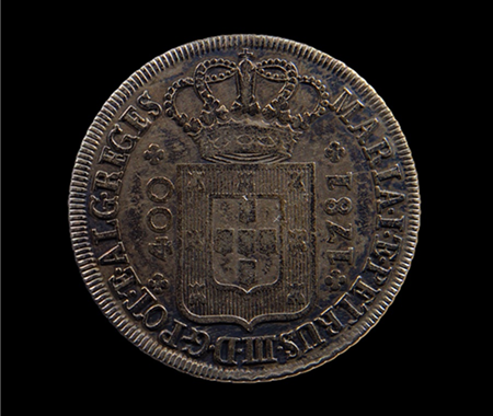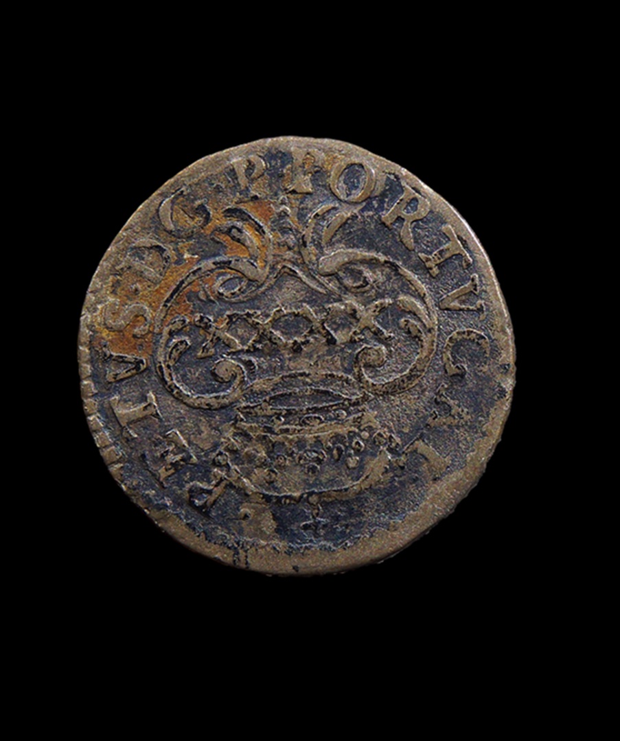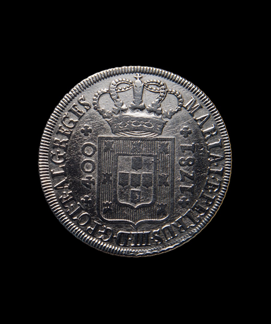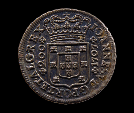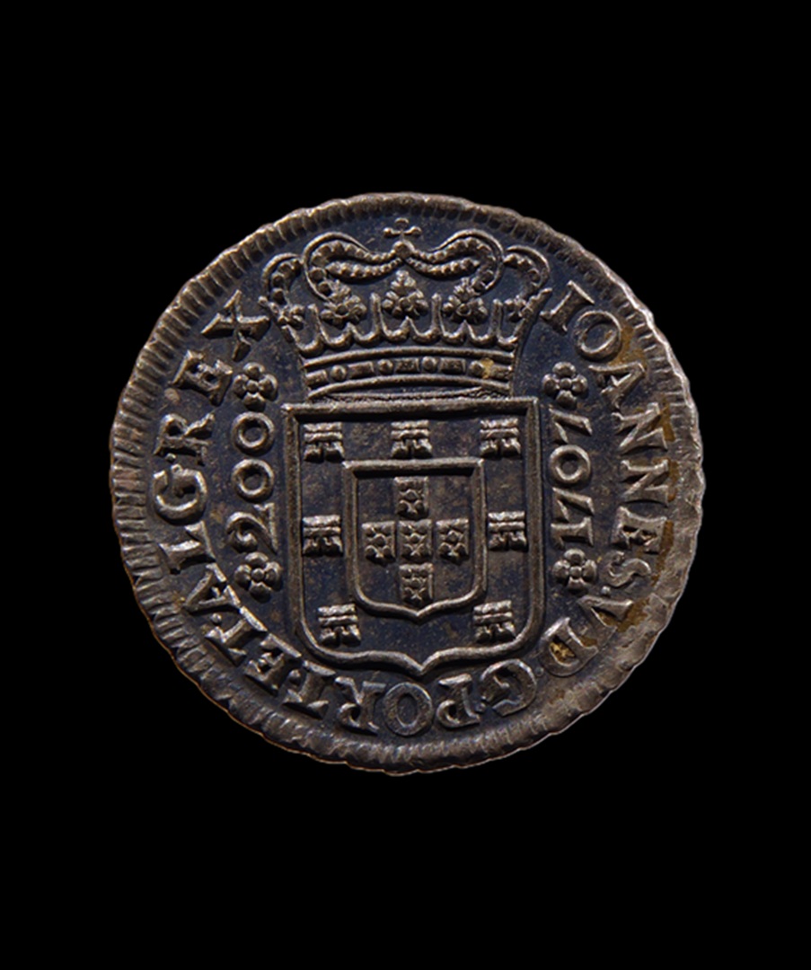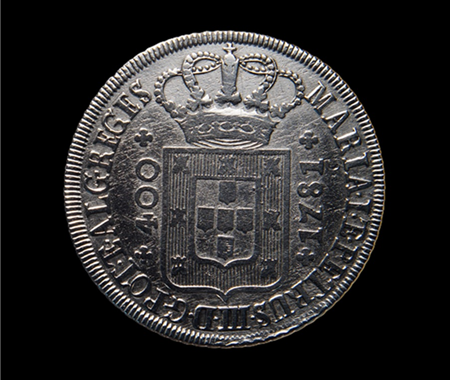 Antes (Cruzado, 400 Réis, D. Pedro II, 1687)Depois (Cruzado, 400 Réis, D. Pedro II, 1687)Antes (Dois Vinténs, XXXX Réis, Príncipe Regente, s. XVIII)Depois (Dois Vinténs, XXXX Réis, Príncipe Regente, s. XVIII)Antes (Doze Vinténs (200 Réis), D. João V)Depois (Doze Vinténs (200 Réis), D. João V)Antes (Cruzado Novo (400 Réis), Maria e Pedro, 1781)Depois (Cruzado Novo (400 Réis), Maria e Pedro, 1781)