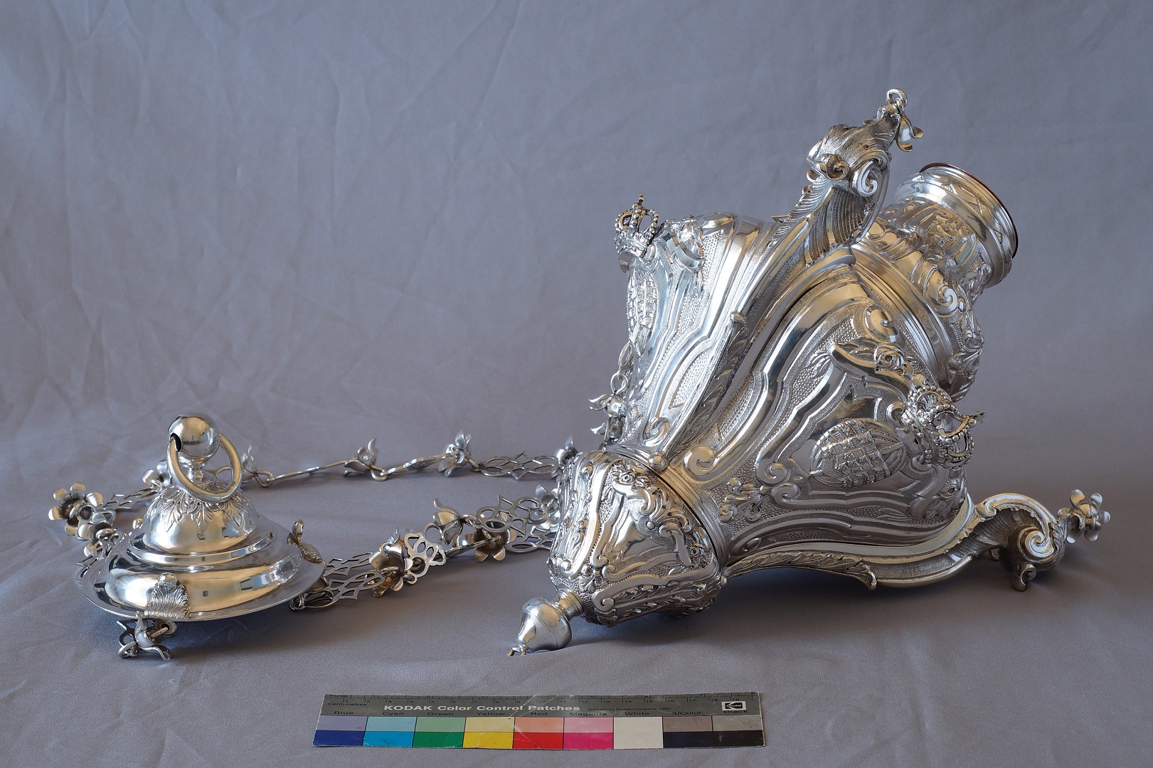 - Lâmpada de igreja, ligas de prata, cobre, ferro, chumbo/estanho, s. XVIII/XIX (PNQ684)