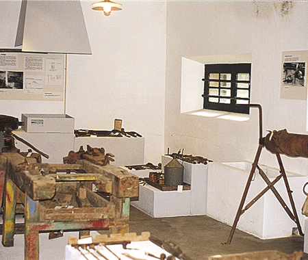 * The Blacksmith's Shop Faria is a collection composed of instruments and tools from the expert Master Faria, given by his heirs to the County Museum of Palmela (1998), for study, preservation and dissemination. This collection allow us to get to know a traditional and antique craft, but already disappeared nowadays. António Teixeira de Faria (1878-1972) was born in Olhos d'Água and inherited from his father, José Teixeira de Faria, the main occupation as blacksmith home-grown, because it was already a tradition within his family.