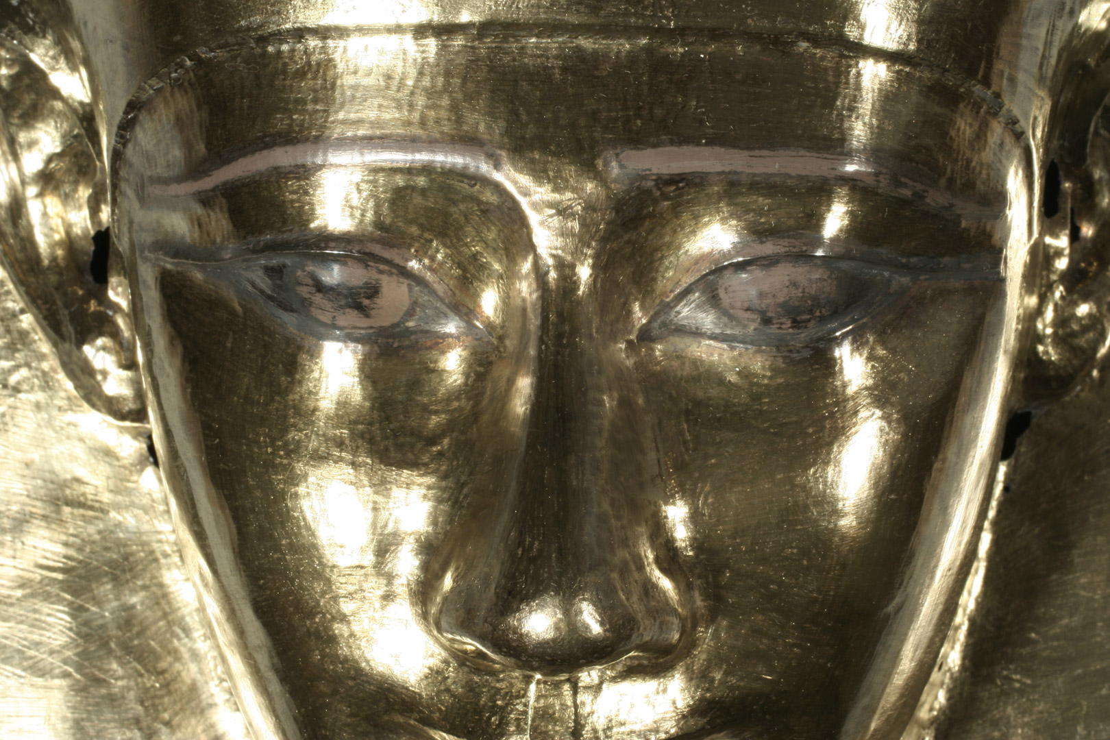 - Funerary mask in gilded silver, embossed, engraved, and pigmented around the eyes and eyebrows, XXX dinasty 664-525 BC, representing an ideal face of a dead man, whose name was not preserved;