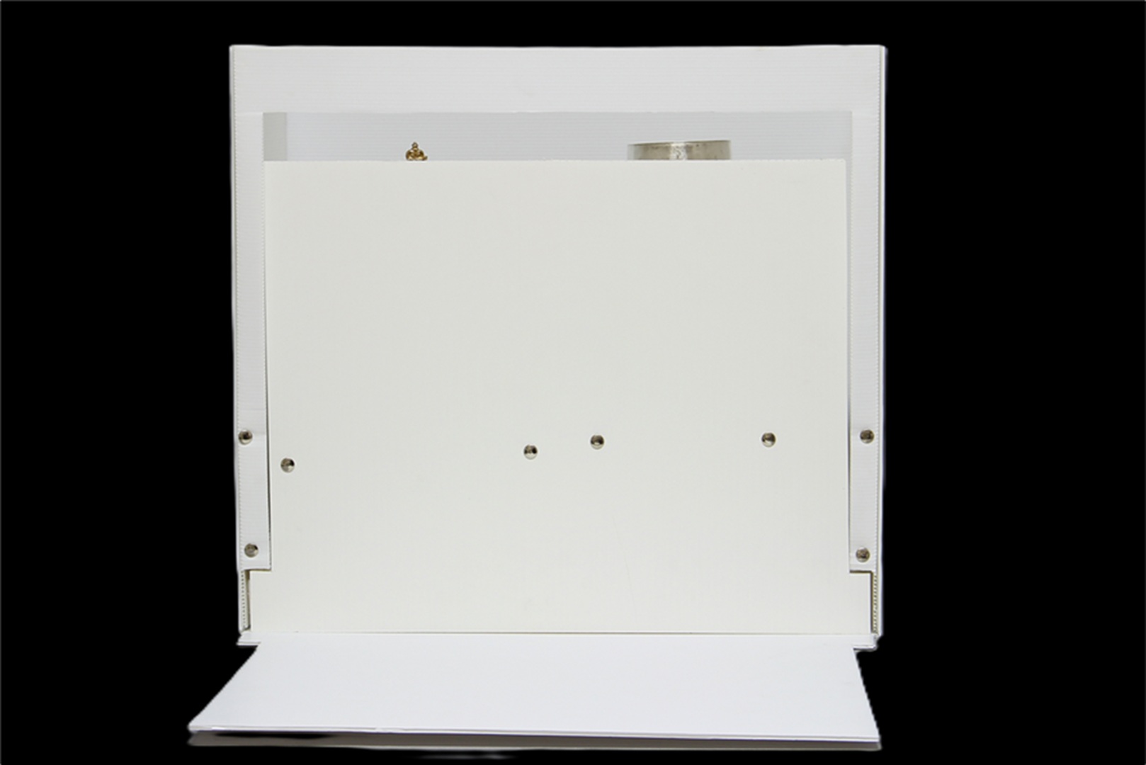 Open polypropylene box, with the monstrance fixed inside. (2)Semi-open polypropylene box, with the monstrance fixed inside. (3) Closed polypropylene box, with the monstrance fixed inside.(4)