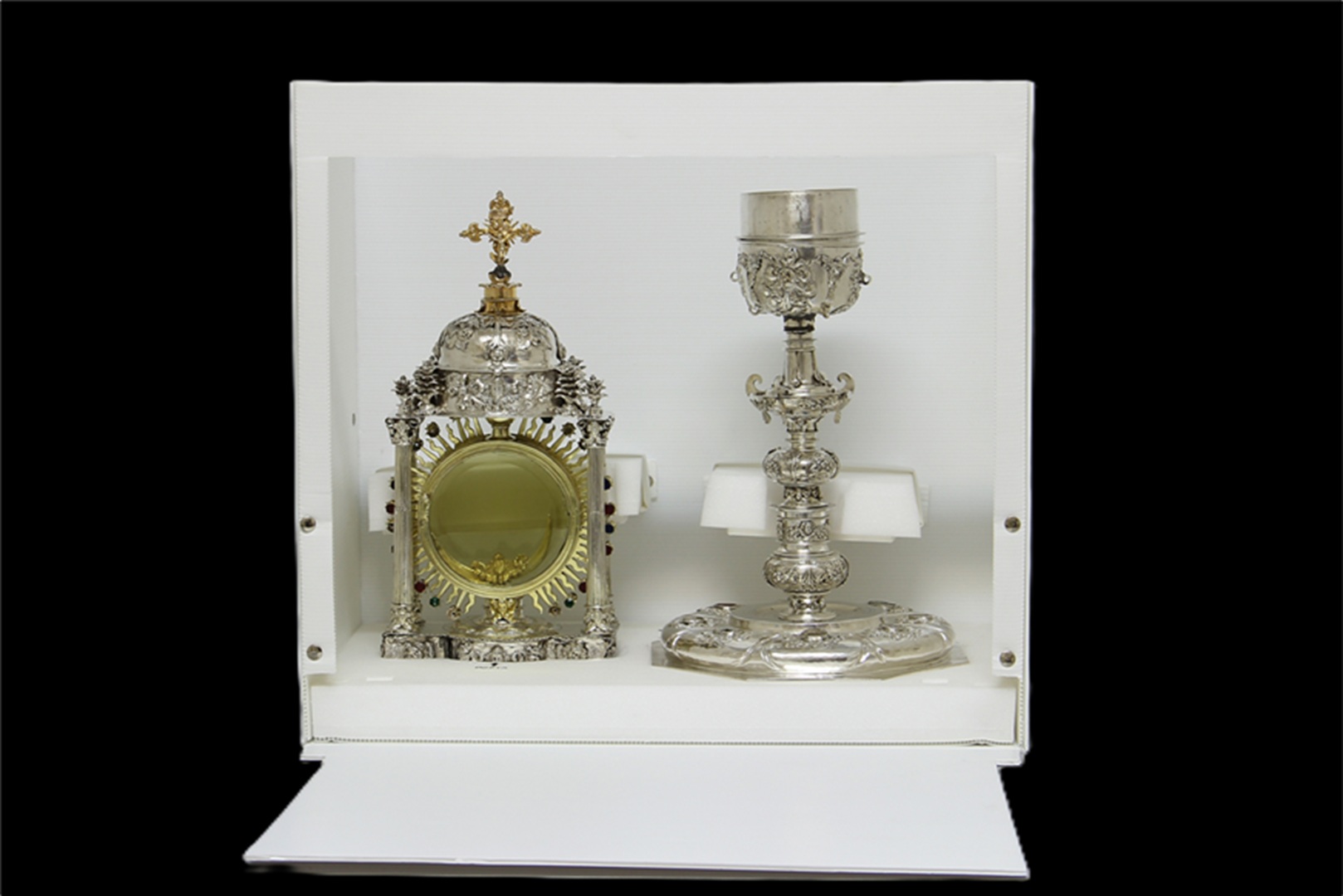 Open polypropylene box, with the monstrance inside. (1)