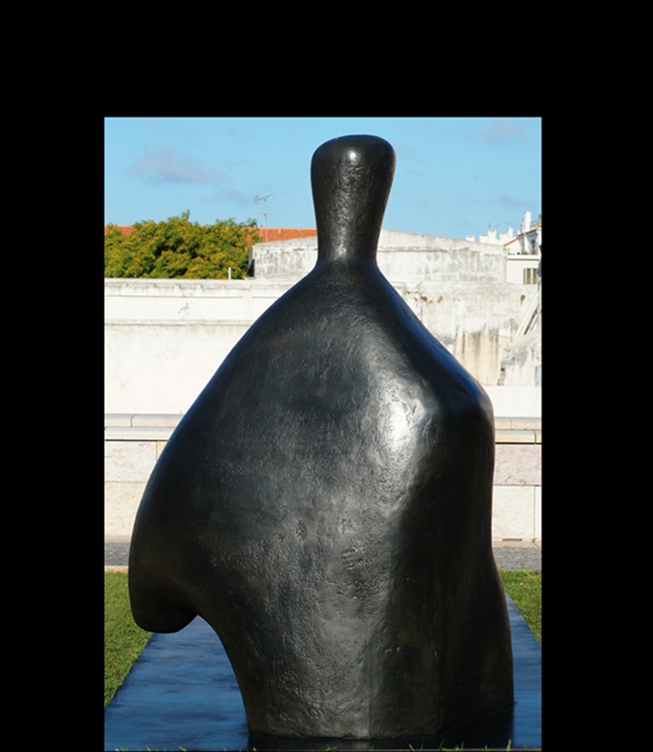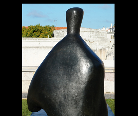 Bronze sculpture with green patina, called Reclining Figure: Arched Leg, 4/6, from Henry Moore(1969-1970), belonging to the Berardo Collection Museum.