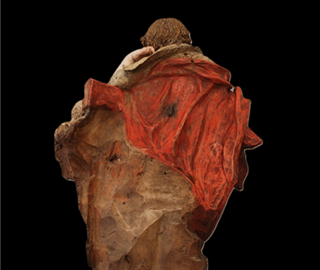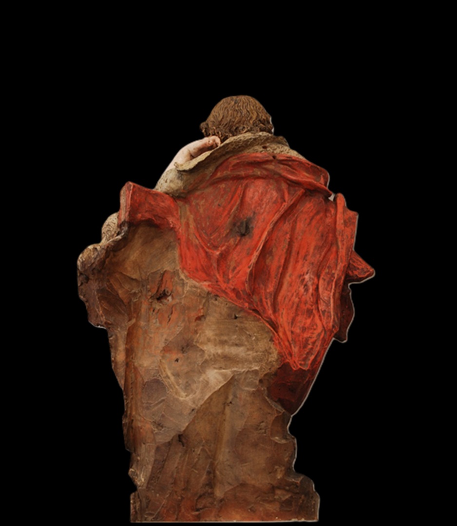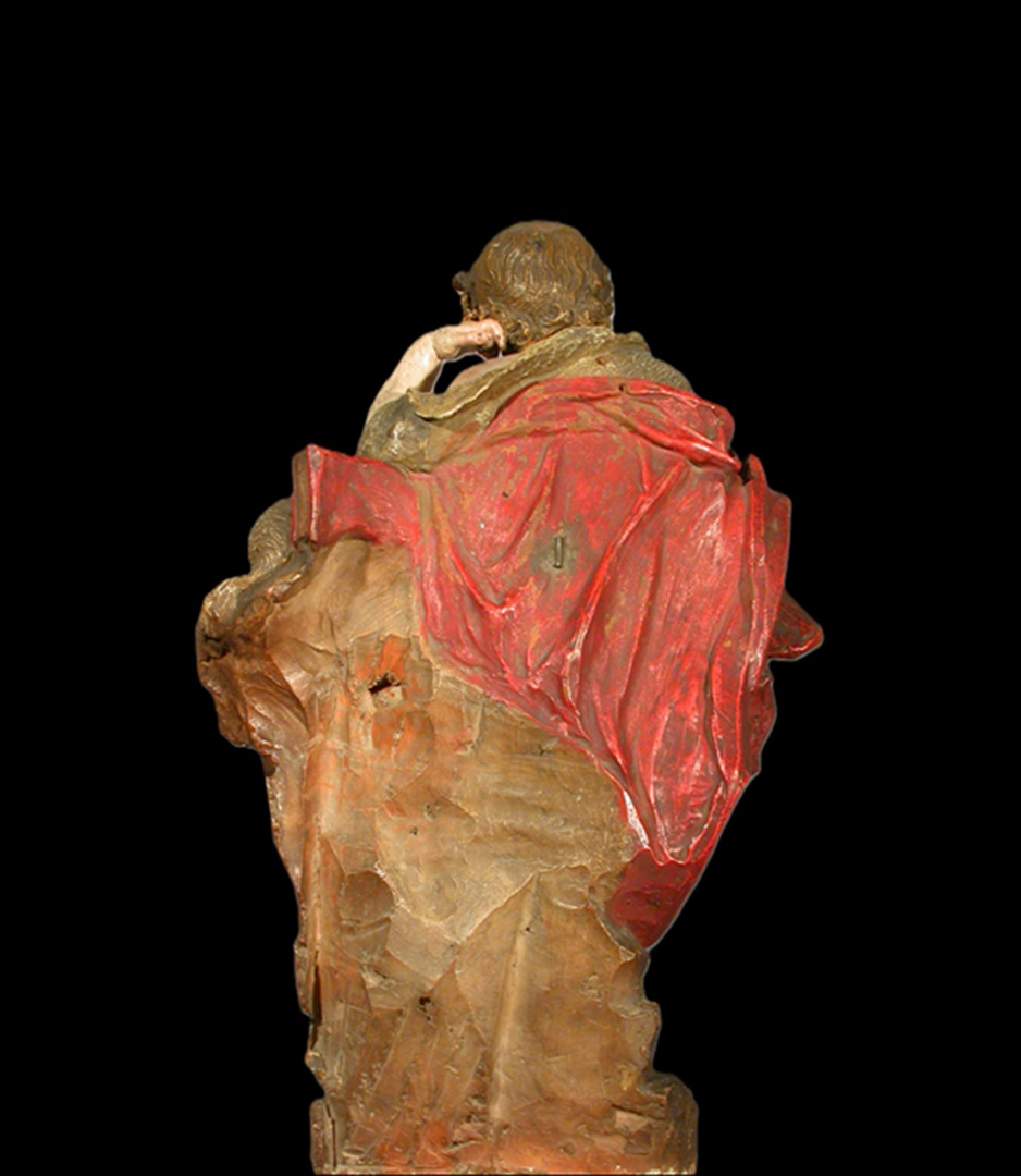 Sculpture, St. John the Baptist, before the intervention (detail).Sculpture, St. John the Baptist, after the intervention (detail).Sculpture, St. John the Baptist, before the intervention.Sculpture, St. John the Baptist, after the intervention.Sculpture, St. John the Baptist, before the intervention (back).Sculpture, St. John the Baptist, after the intervention (back).