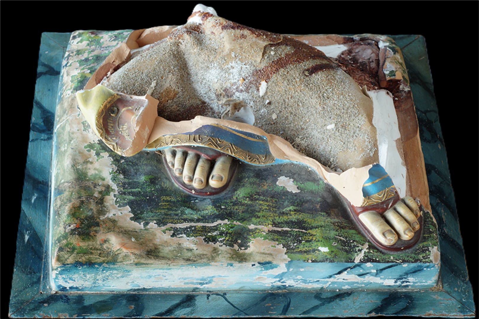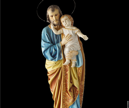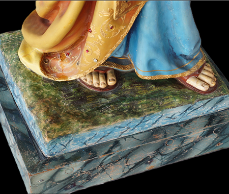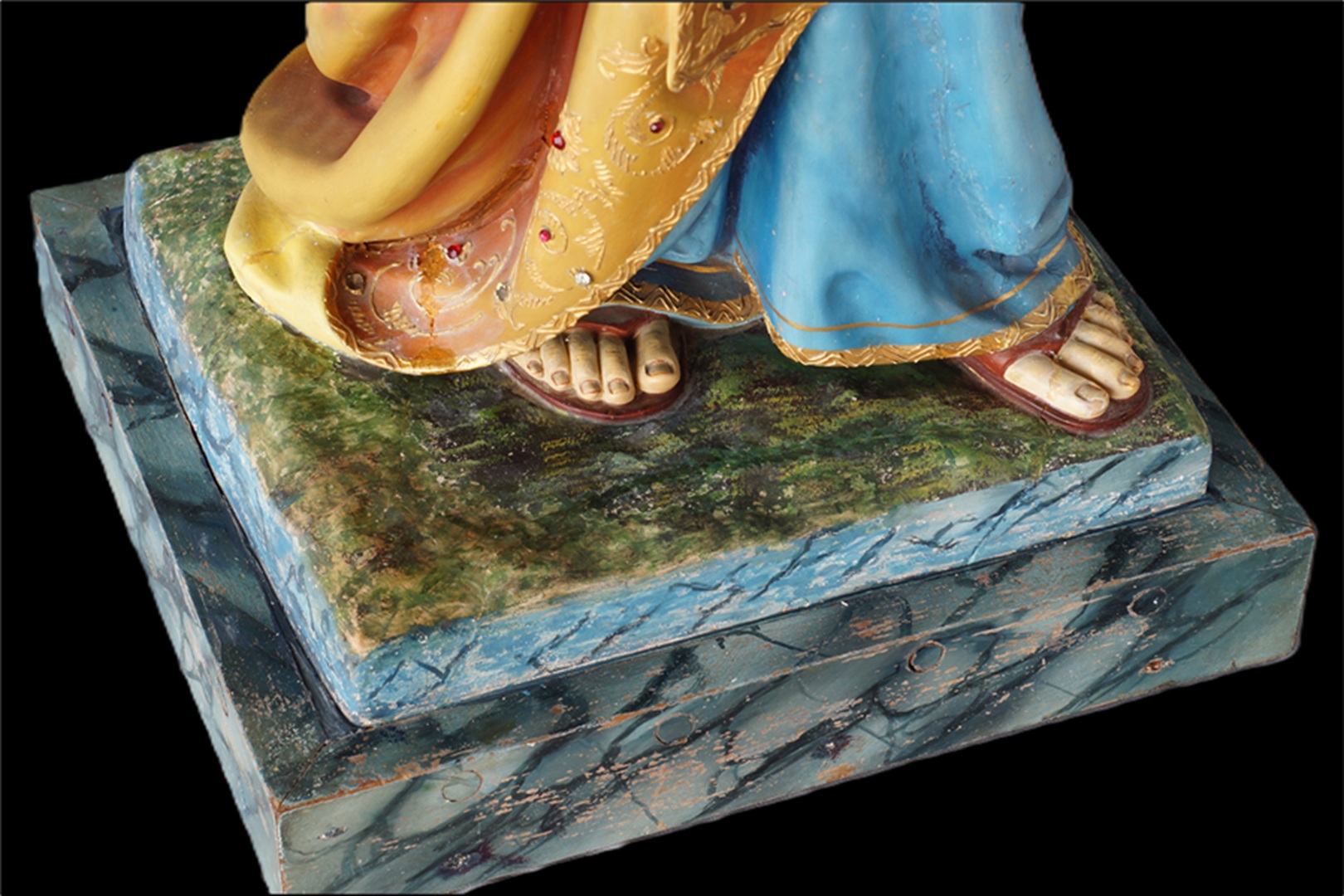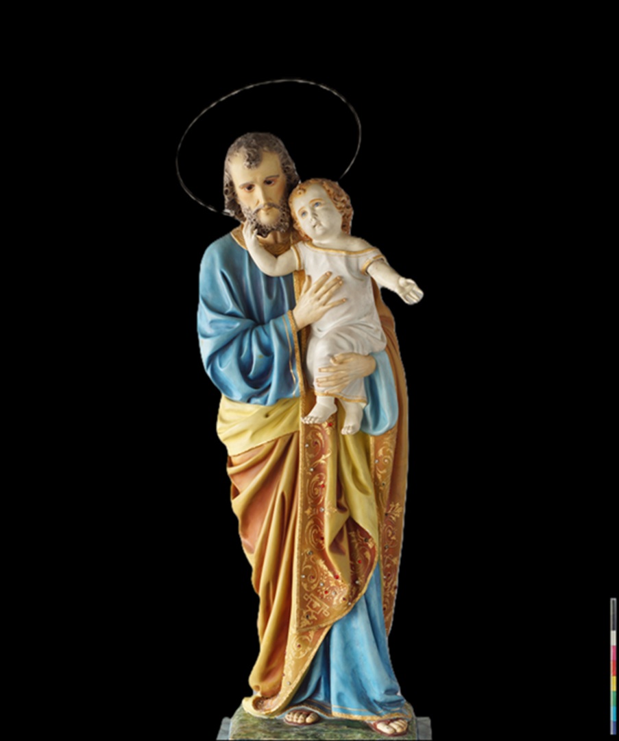 Detail of the sculpture of S. Joseph and the Baby Jesus, before the intervention.Detail of the sculpture of S. Joseph and the Baby Jesus, after the intervention.Sculpture of S. Joseph and the Baby Jesus, before the intervention.Sculpture of S. Joseph and the Baby Jesus, after the intervention.
