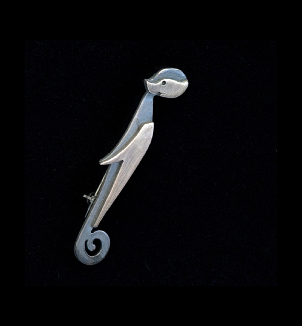 Pregadeira de prata inspirada em elemento zoomórfico da composição de uma letra da Bíblia, conhecida por “Testamento Velho do Lorvão”.