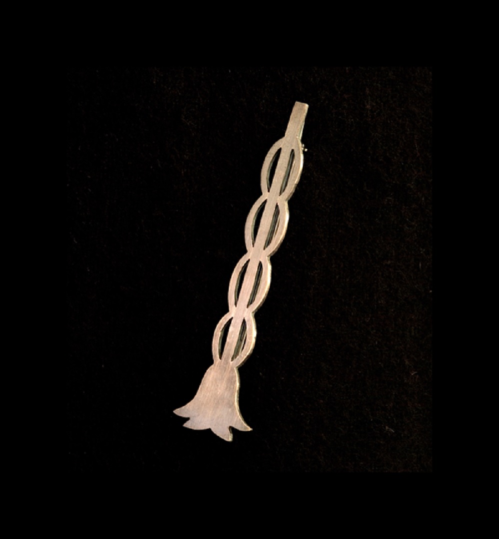 Pregadeira de prata inspirada num elemento decorativo da cercadura de um fólio do Livro de Horas de D. Duarte.