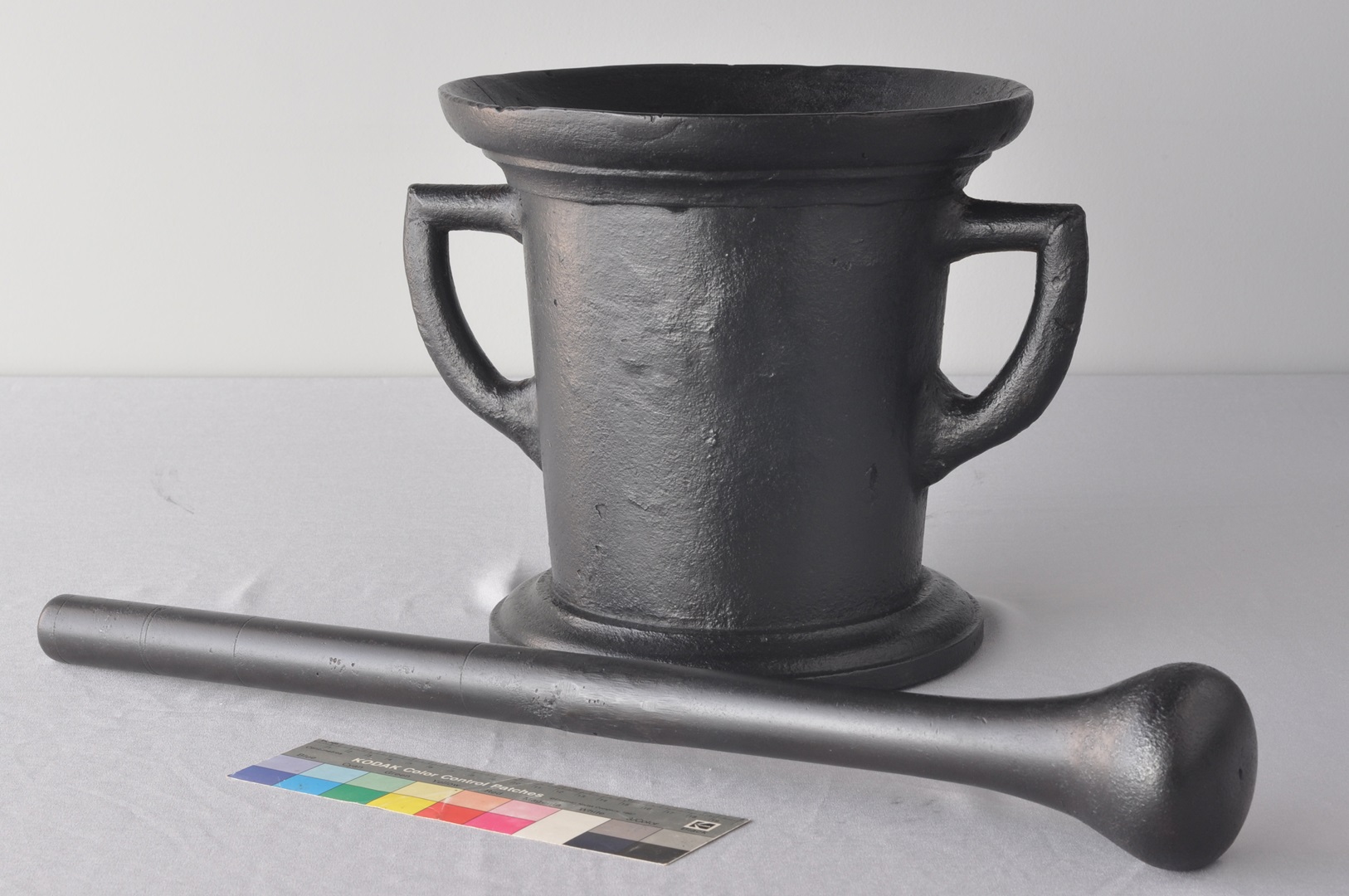 Conservação e restauro de um almofariz e um pilão de liga de ferro, do acervo de uma colecção particular.