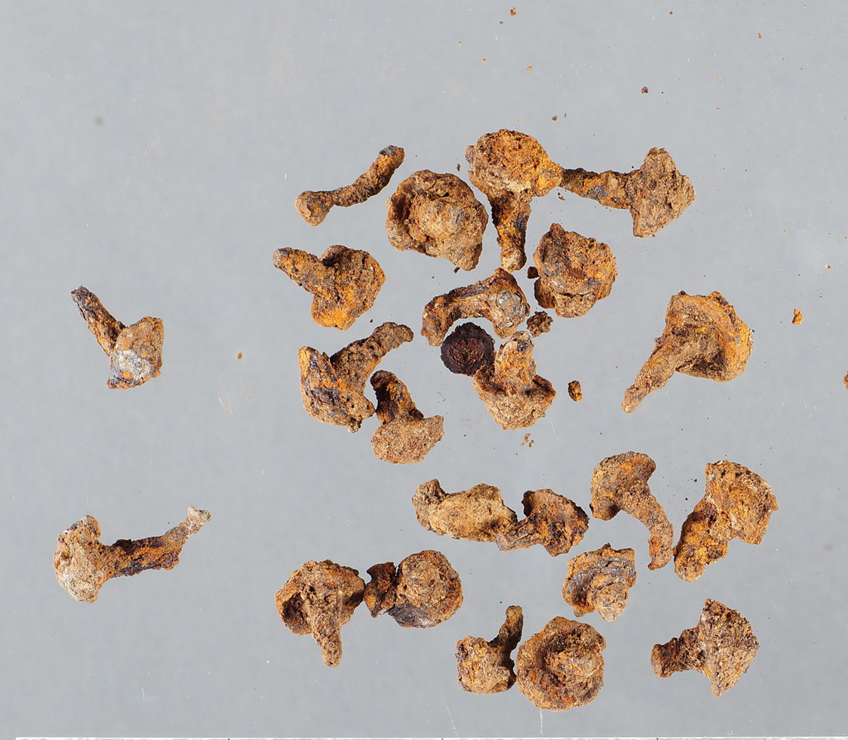 Lucerna, antes da intervenção.Lucerna, depois da intervenção.Fíbula, antes da intervenção. Fíbula, depois da intervenção.Copo de vidro, antes da intervenção. Copo de vidro, depois da intervenção. Garrafa de vidro, antes da intervenção. Garrafa de vidro, depois da intervenção.Cinzel e escopro, antes da intervenção. Cinzel e escopro, depois da intervenção. Alfinetes de osso, antes da intervenção.Alfinetes de osso, depois da intervenção. Argola, antes da intervenção. Argola, depois da intervenção. Tachas, antes da intervenção. Tachas, depois da intervenção.