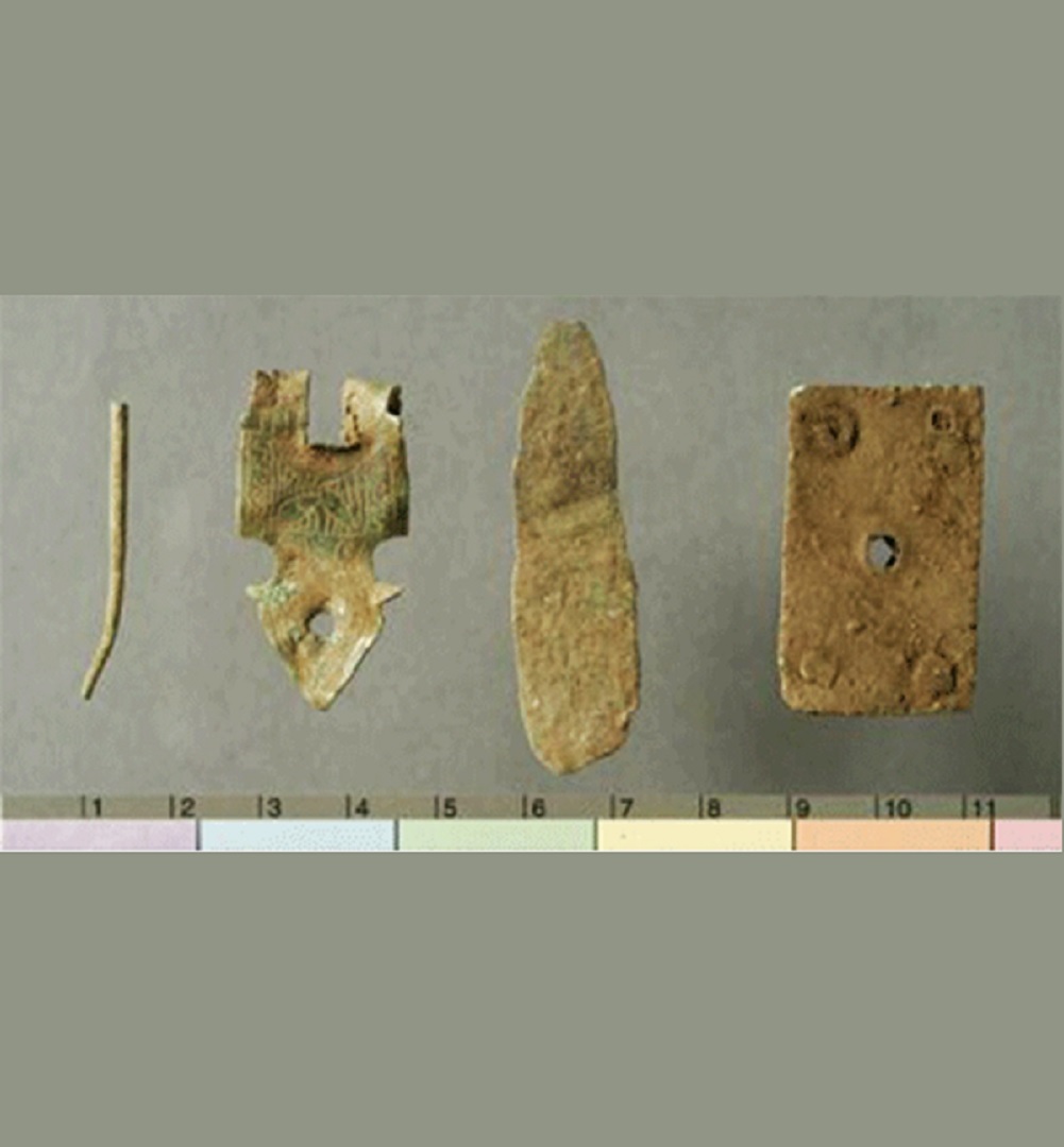 Artefacto, antes da intervenção. Artefacto, depois da intervenção. Conta de colar, antes da intervenção.Conta de colar, depois da intervenção.Fivela e ornamento, antes da intervenção. Fivela e ornamento, depois da intervenção. Dobradiça, antes da intervenção. Dobradiça, depois da intervenção. Compasso e agulha, antes da intervenção. Compasso e agulha, depois da intervenção. Artefacto, antes da intervenção. Artefacto, depois da intervenção. Faca, antes e depois da intervenção. Faca, antes e depois da intervenção. Tachas, antes da intervenção. Tachas, depois da intervenção. Agulha e fechos, antes da intervenção. Agulha e fechos, depois da intervenção. Fivela, antes da intervenção. Fivela, depois da intervenção. Brinco, antes da intervenção. Brinco, depois da intervenção. Fragmento de argola, antes e depois da intervenção. Artefacto, antes e depois da intervenção.