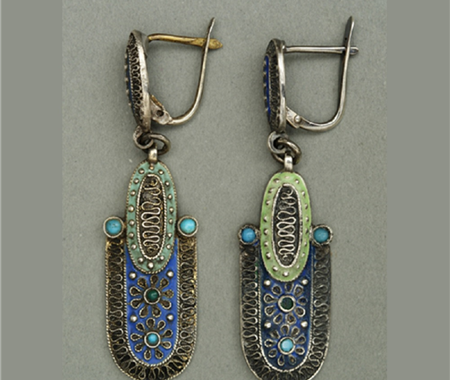 Execução/criação de uma réplica de um brinco de liga de prata, esmalte e turquesas, para uso pessoal, pelo método de molde directo em silicone.