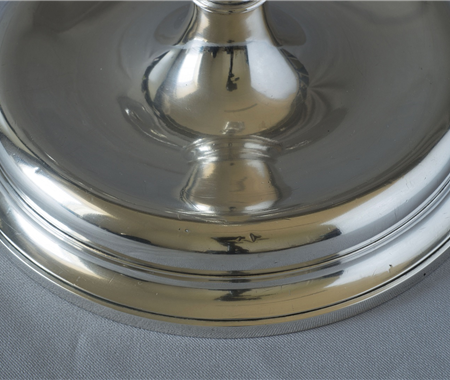 Conservação e restauro de candeeiro de dois lumes com ventarola (finais séc. XVIII) de liga de prata, tafetá em seda, papel e cartão do acervo do Palácio Nacional de Queluz, Sintra (PNQ217A). Este trabalho contou com a colaboração de Madalena Serro, conservadora-restauradora de têxteis.