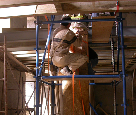 Coluna, antes da remoção. Coluna, antes da remoção.Preparação para a desmontagem e remoção da coluna.Coluna, depois de desmontada e removida do local original.