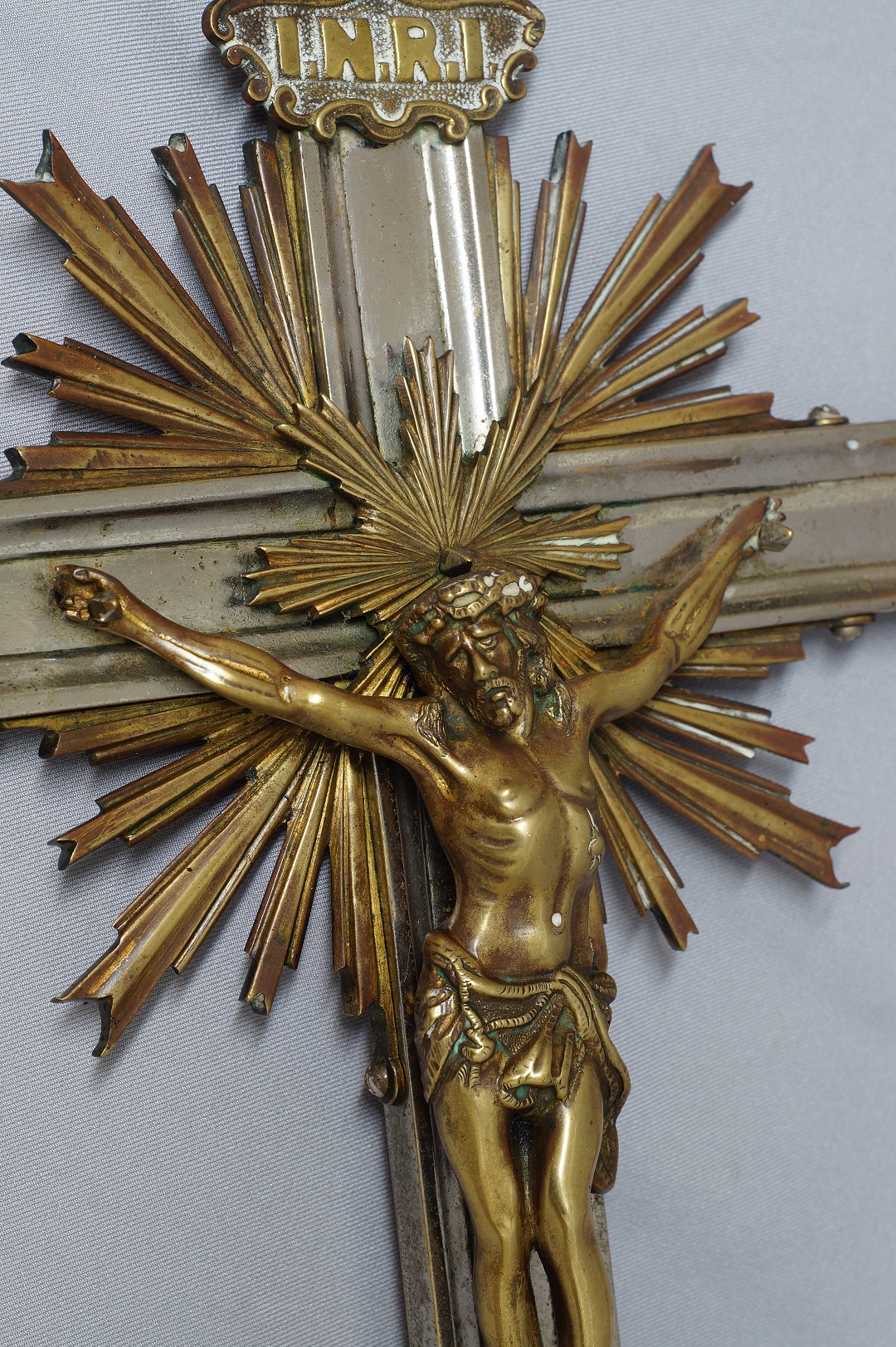 Conservação e restauro de uma cruz processional de liga de cobre, liga de cobre niquelado e liga de ferro.