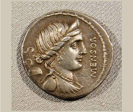 Conservação de um conjunto de numismas - denários - de liga de prata, provenientes do Periodo Romano, Tardo-Republicano, do acervo do Museu do Dinheiro