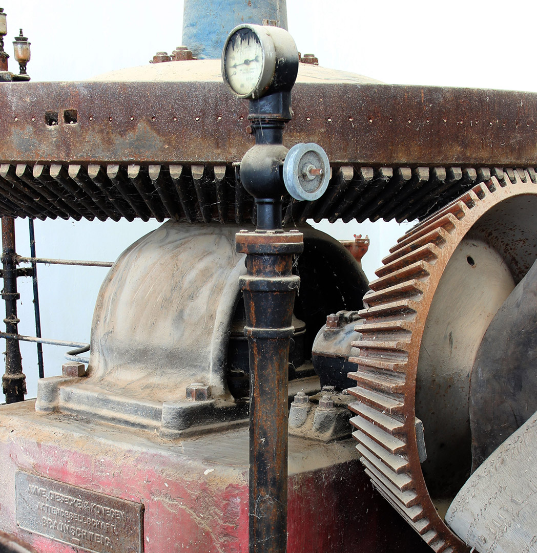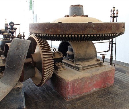 - Turbina (tipo Francis), Amme, Giesecke & Konegen (AGK) de ligas de ferro, cobre e chumbo, vidro, cimento, couro, tintas, tela e madeira.