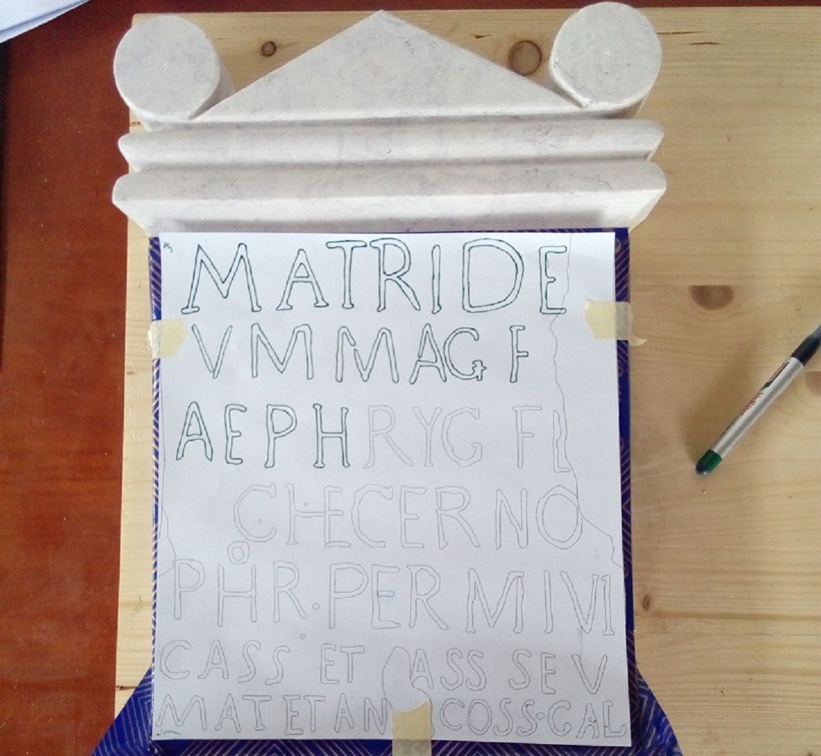 - [1] MATRI DE VM MAG(nae) IDAE A FRHYG(igiae) [Ty]che. CERNOPHOR(a) P(er). M(arcum). Jul(ium) CASS(iam). ET CASS(iam). Sev(eram?) M(arco). AT(ilio). ET A(nio). CO(n)S(ulibus)S. GAI(lo)