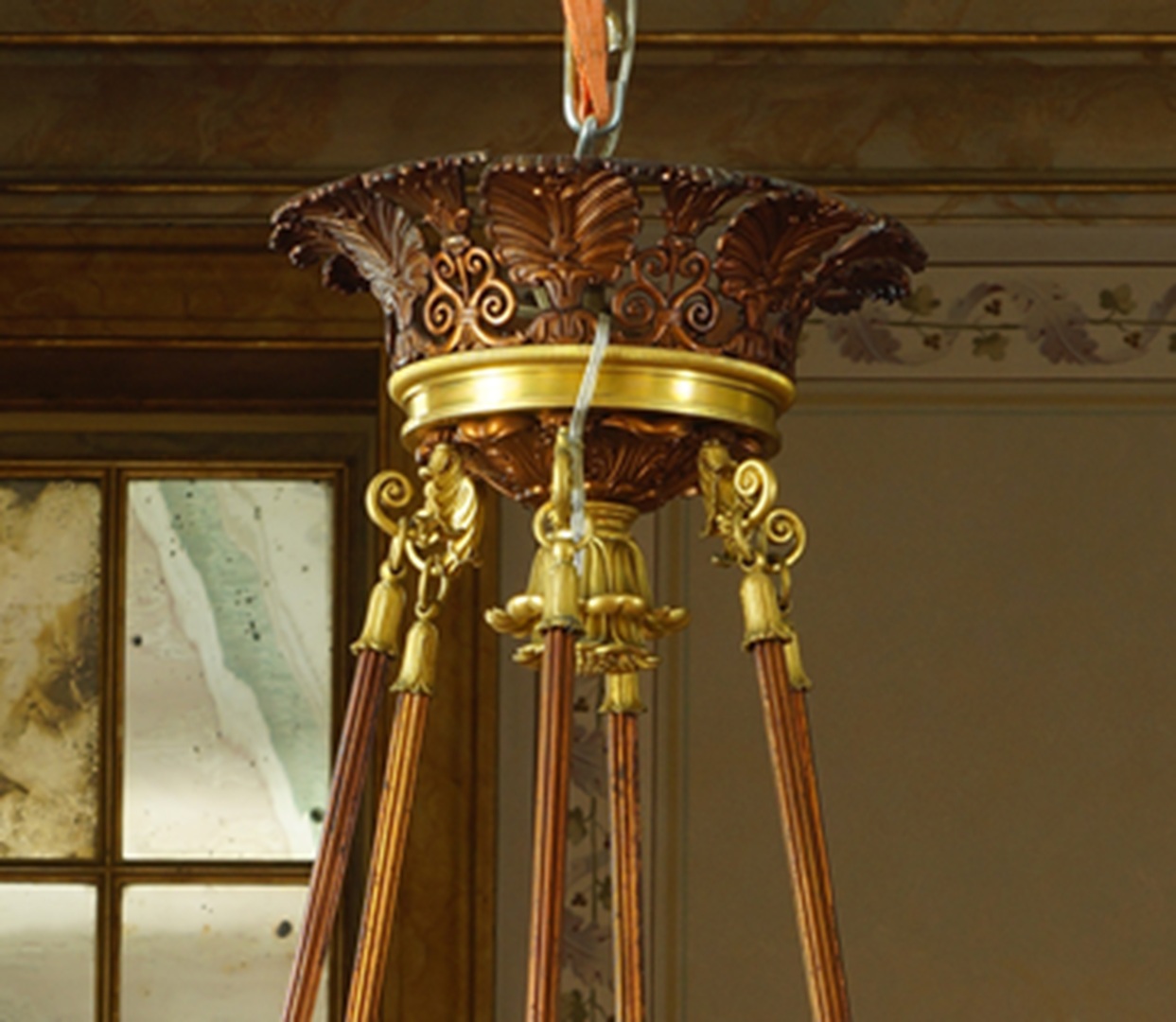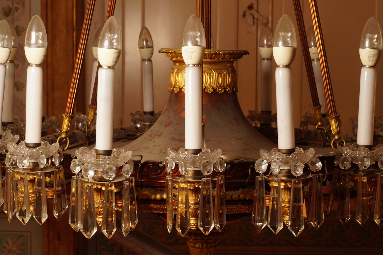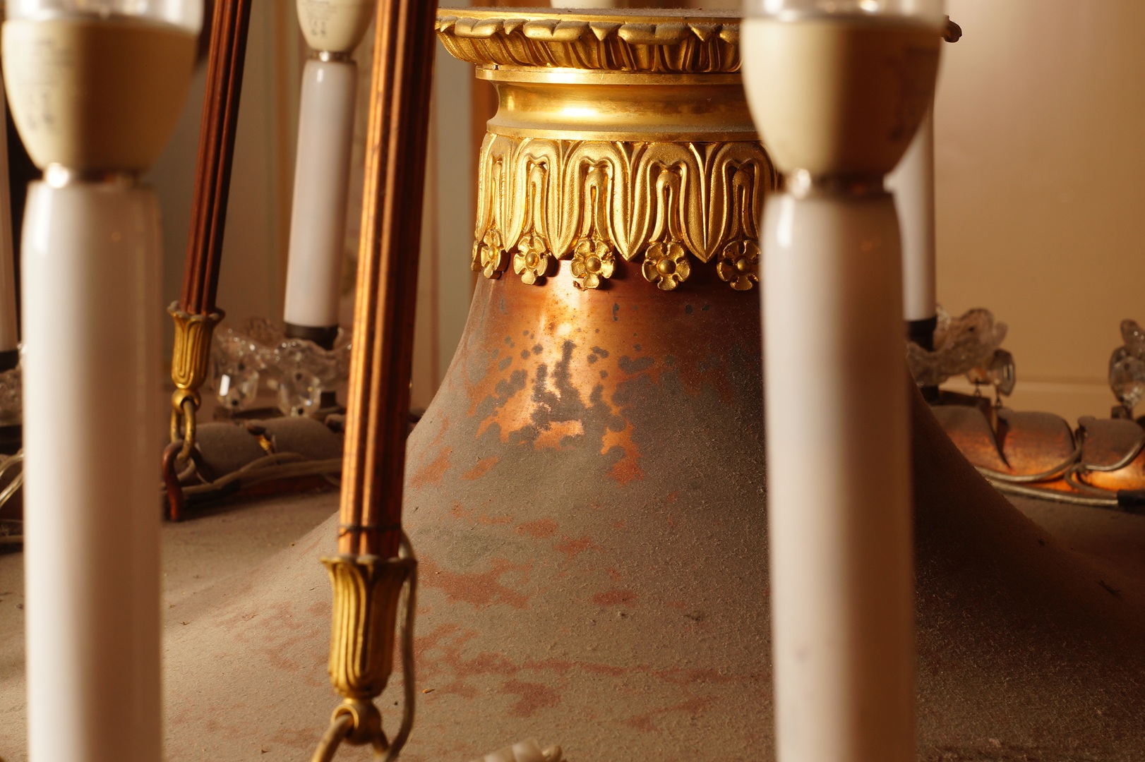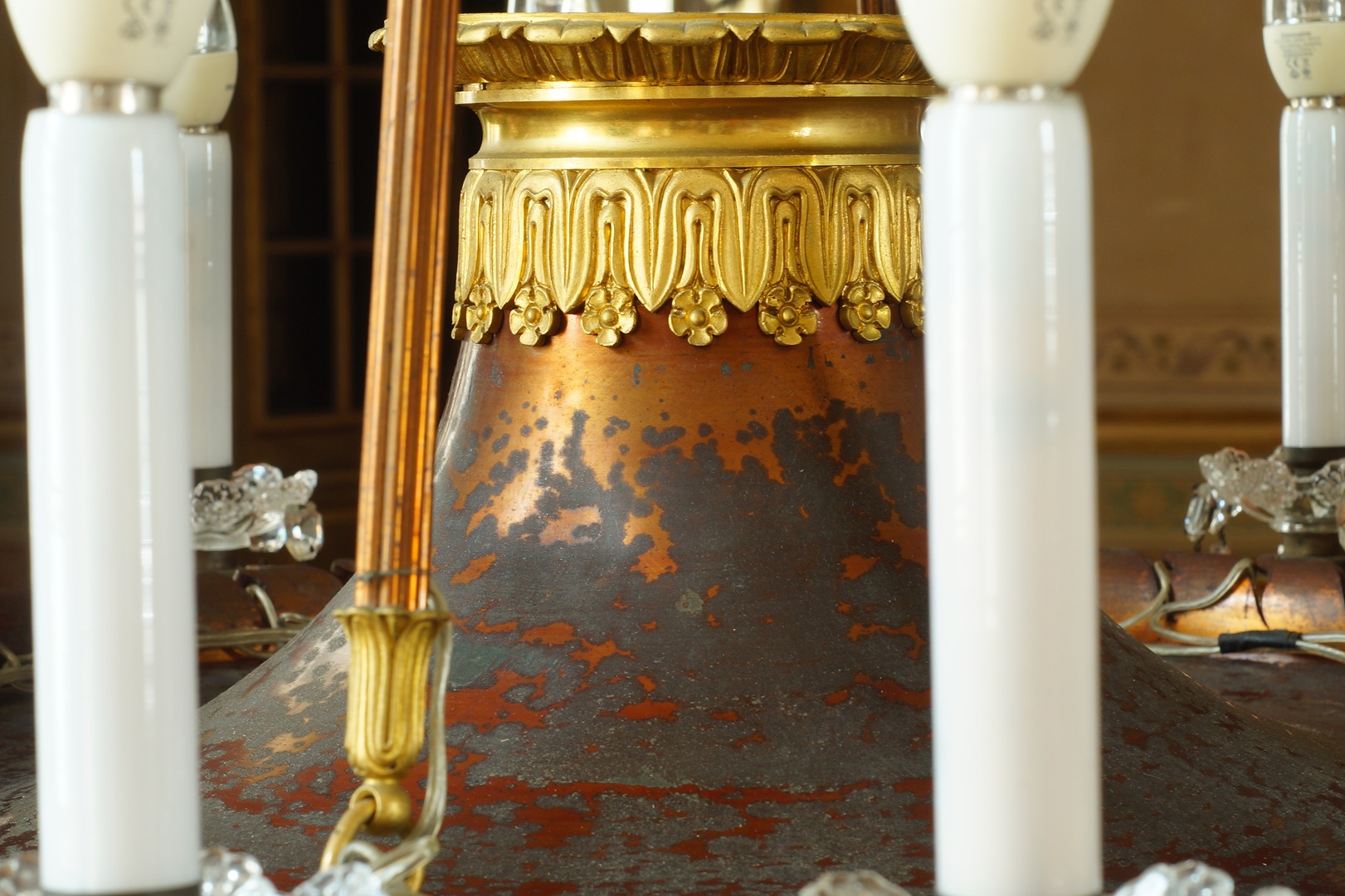Conservação e restauro de um lustre de liga de cobre, liga de cobre dourada, verniz, cristal (ou vidro), PVC e plástico, do acervo do Palácio Nacional de Queluz (Sintra