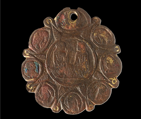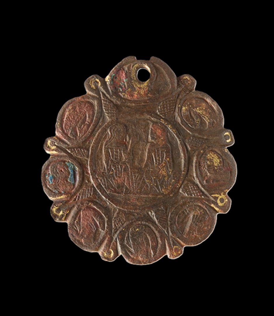Elaboração de um estudo técnico e material de um conjunto de sete medalhões de liga de cobre com aplicações de esmaltes e vestígios de douragem (MMLT.000853 a MMLT. 000856; MMLT.0008538 e MMLT.0008128), atribuídos como sendo medievais, séc. XV*, do acervo do Museu Municipal Leonel Trindade, em Torres Vedras. Os medalhões são adornos de cavalo da época medieval, os quais eram pendurados, rebitados ou cosidos nos arreios dos animais, como sendo a sela, o cabresto e as rédeas.